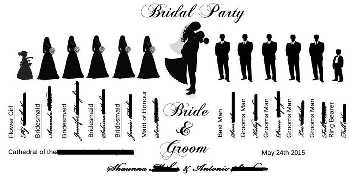 Hi everyone I created the following wedding party silhouette template using Adobe Photoshop 10 (the silhouettes themselves came from various sites) for a draft of the wedding programme (a rough copy - wedding still a long time away) and was...
