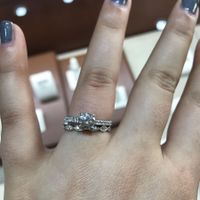 I can't decide which wedding band I like better. Opinions?? Side note: the one with the blue stones would be fully diamonds if I were to get it but only had this one in stock to try on. (One pic is in...