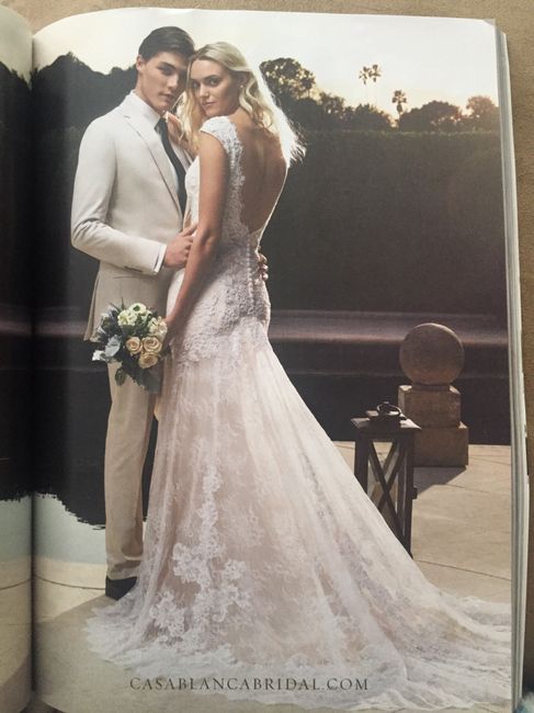 I've been getting Brides magazine in the mail for a couple months (and I'm not sure how, but whatev, I get to look at pretty stuff), and I love the dress in this ad. Or, at least the back of it, but I want to see the whole dress! I've been looking...