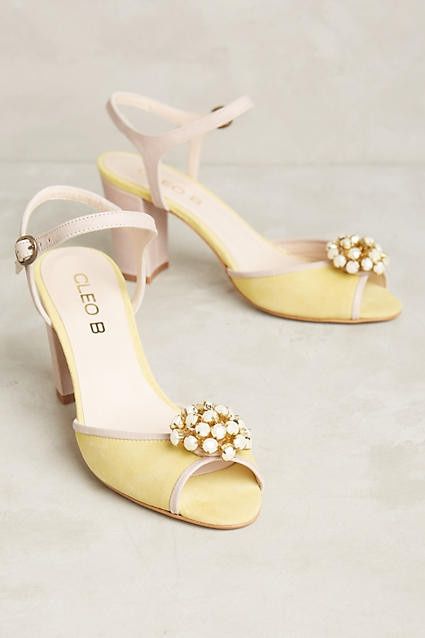 My bridesmaids will be wearing navy dresses and yellow shoes. Our colors are navy, gray and yellow. Our theme is sunflowers. I can't seem to find a yellow shoe I like anywhere! I want a sunflower/canary yellow and either a flat or a very low heal as...