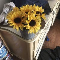 My mom is making my centerpieces for my bridal shower we are having a picnic theme with sunflowers. She made a centerpiece tonight just to get an idea what do you girl think. We are putting burlap...