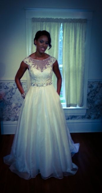 I haven't been able to share my dress yet because I've only ever used mobile so now I have to share my dress and I want to see yours!!!! In these pictures the dress is all pinned up for alterations and my straps aren't right so it looks a little off...