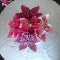 Ok so I can't decided if I should make the large paper flowers for my center pieces one solid color or multi colored like I did the smaller ones? The large one when done will have the jewel like the...