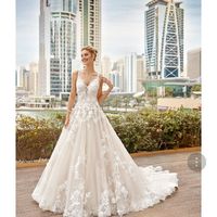 My dress is formal with a v neck neckline. I want my girls to wear something simple in navy. But im not sure what! I know they are suppose to compliment my dress but i need help! A pic of my dress is...