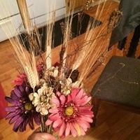 I need some center piece ideas, we are doing an outdoor wedding our colors are light pink and mossy oak camouflage......... It needs to be simple but not trashy.