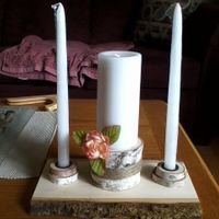 Here are two DIY things that I have done for the wedding, I made a unity candle with a white birch stand and the other is a chalkboard sign I made for drinks with chalkboard maker (I'm cleaning up the...