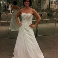 I couldn't help myself from trying on my dress earlier this week (when I broke the eye hook off the top of the zipper -.-). BUT I did get some pictures before that happened! These were the best I could do in my house. The finished, altered dress is...