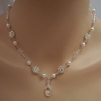 Just got back from a jewelry show at one of our local bridal salons, and bought the necklace and earring sets for me and my bridesmaid....and I'm so in love with them! My dress is ivory and has flower...