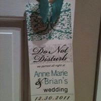 Well, I designed them and my mom is printing them for me... she just sent this pic! My mom is amazing! Anyone else doing door hangers?? What else are you/did you put in welcome bags? We're going to...