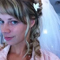 I was pretty positive I wanted my hair up, but now I'm not so sure. I thought that with the style of my halter dress, hair should be up to show off the dress and my veil is short. My aunt is doing my...