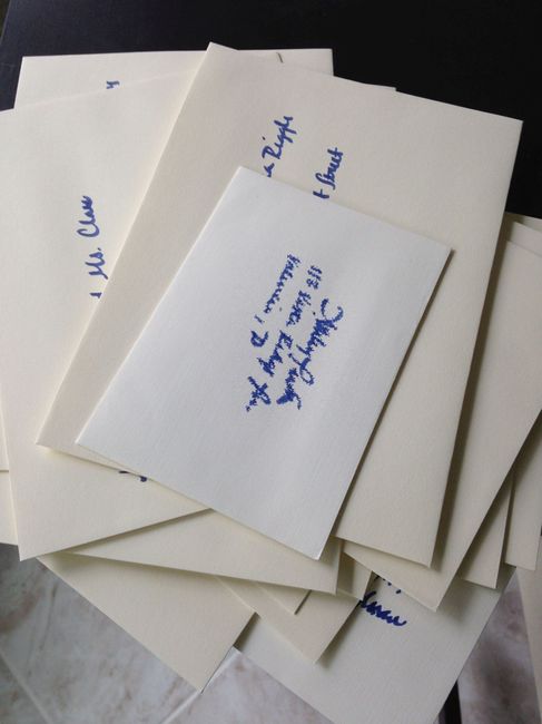 I received our invitations and RSVPs yesterday. I was so excited I met the delivery man half way down the driveway, and they look great! We designed them ourselves. I am wondering how most people address their envelopes. We do not have time to hire a...