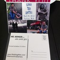 Woo hoo my FH and I are really happy with them! What do you guys think? FYI: I got 100 postcards, a pen, and a window cling from vistaprint.com for a grand total of $6.41 (and that included...