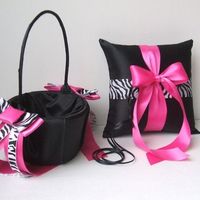 I need help finding 2 zebra print baskets and a ring bearer pillow. Our colors are white, black, and pink. I looked at etsy but the one I found would have cost $80. I'd like to only pay...