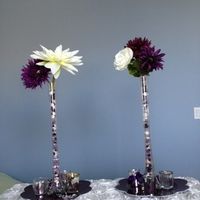 Can I get an opinion on these centerpieces and cupcake trays? Our wedding colors are plum & ivory with a hint of silver and vintage feel. For the centerpieces: I will be using real flowers on the day...
