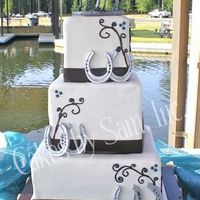 My cake is (in my opinion) slightly bland looking. The picture that I showed the cake maker to make the photo has a cake topper. My cake is round 3 tier. It is ivory with lavender fondant band on each...