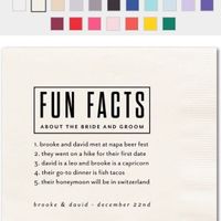 Wedding paper divas has 40% off personalized napkins and I wanted to order some with fun facts on them. I thought it was a fun, personalized touch. I need help brainstorming what kind of facts we...
