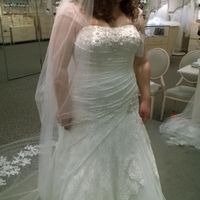 I'm adding lace cap sleeves and the veil is cathedral with matching lace although you can't tell from the front. The back is corsetted with beading along the sides of the corset. I'm going to wear the...