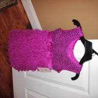 Yippee! I picked up a $20 flower girl dress from costco to day. In the store it look purple but when I got it home it look more fuchsia, but I'll roll with it.