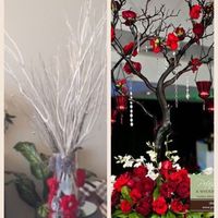 As I've mentioned before, FH's aunt is DIYing a lot of our decor. One thing I specifically wanted was a little tree with red flowers (matching my bouquet) for the guest book table at the reception....
