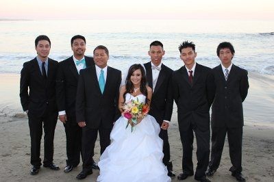 The Brides names is Brittany and the Groom's names is Nhe (pronounced like knee)... get it? Brit-Nhe LOL one of the coolest or cheesiest things about us. We met on June, 6, 2002... My's last day of my sophmore year of high school and Nhe's graduation day from high school. We were both recently single and two of our friends had been trying to set us up since the day I became single. Nhe went with his friend to the high school to pick up his friends girlfriend who was also my friend. I was standing in the driveway of the high school in a baby pink spaghetti strap, blue jeans, and flip flops and hugging my friend goodbye when I heard my friends say "Hey Nhe." I turned around to face Nhe who was in a white shirt with a yellow strip, white pants, and tan boots and we were introduced. After a quick "Hi", I bolted. Later that day my friend came over to borrow a shirt and convinced me to go to the graduation despite not knowing anyone who was graduatng. Nhe and I later heard that we had both asked about each other to our friends. I went to the graduation only to find that it was Nhe's graduation I was attending! To Nhe's suprise I was sitting in the stadium with his family watching him walk and receive his diploma. After the graduation we were one again face to face, both shy and not knowing what to say to the other. I had to be home early so Nhe walked with me and my friend back to my friend's boyfriends car. Nhe gave me a bouquet of flowers before we parted ways. From that moment on we found ourselves entagled in what has been described as a "movie magic" romance falling in head over hills in love. Make no mistake, it has not been easy for us. Meeting at 15 and 18 has it's disadvantages. My family HATED Nhe before even getting to know him because he was older. We spent most of the first 2 years of our relationship sneaking around. I was often grounded and had no phone privilages and Nhe was supposed to have an arraged marriage to a girl from vietnam who's family would pay his to have her become part of there. But love always finds a way. In time our family's realized that this was real and neither one of us was going anywhere and now we all love each other and are one big happy family. Crazy how things turn out. The Proposal Nhe proposed on 5-1-10 though we had already agreed to get married in February. In February, EVERYTHING wedding kept coming up and it seemed like everyone was talking to us about marriage so Nhe and I just decided it was time and we were going to do it. We started planning for the wedding, telling family, and I picked out my ring. I NEVER expected him to give me a "proposal story" becaues we were already engaged. 5-1-10 was the Saturday of the Mosley VS Mayweather fight and we had all of his family, my family, and a few friends over which isn't uncommon because whenever we have an excuse to have everyone over, we do; so I thought NOTHING of it. That day, I did get mad at FH but didn't say anything, I called my mom to see if she wanted to go shopping but she said she couldn't. I went with his brother and bough a rather expensive purse lol and we came back home. The FH was acting mad at me so knowing there was an hour before everyone was coming, I laid down to take a nap. My FSIL/BFF text me they were on there way wanting to see if I was home yet, I said yes but your brother is mad at me. She freaked out and then called him because everyone knew he was going to propose but me. She said yea he is mad at you lol but he really wasn't. So then I took my nap, people came over and I was showing my dress and talking wedding plans, then we ate after my FH bbqed. Before the fight started, I was sent to the store to get drinks with his sis my BFF. When we got back everything was yelling Brittany's back! I was thinking wow, we aren't really a big drinking family, guess everyone wants to drink tonight? lol. FSIL/BFF said she wanted a pic of the family. So my parents were going to take the pic. My dad didn't know how to use my camera so I had my back turned and was showing him how. When I turned around, I saw FH down on his knee's and was in shock, I was waiting for him to say somethign when his sis yelled out "Read our shirts!" Each of them had there own individual letter spelling out "WILL YOU MARRY ME?" FH was "ME" and our nefew was the "?" FH had a Ring Pop in the box as an inside joke between us and his nefew had my real ring in the same position as FH holding my ring out to me which I wasnt expecting to be in for another 3 weeks! Meanwhile everyone was taking pics of the whole thing. I couldn't have asked for a more perfect proposal!! I later learned, my mom had my dad call Nhe because she was worried that I was mad at him and my FSIL had called Nhe because she was worried he was mad at me and it was his brothers job to make sure we came back before everyone started to get to the house. When I was sent out for drink (which no one drank), it was so they could do a "practice proposal" lol because FH was so nervous it wasn't going to work out right! LOL I love them all
