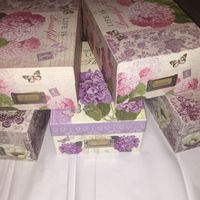 My wedding colors are teal and deep purple. I am going for a rustic/shabby chic look minus the doilies. I am on mobil so I apologize in advance for the separation of photos. I will have 3 different...