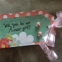 I bought some earrings for our flower girl at Claire's and wanted nicer packaging for it than the tag. So I gathered some scrap paper and ribbon and attached the earrings together. I will be adding it...