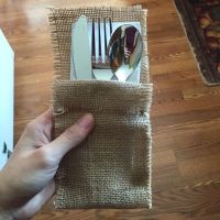 Just made a burlap silverware holder! I'll have about 150 to make but it took less than a minute to make it. My colors are plum and deep/dark teal so I may be adding a thin lace ribbon or a satin...