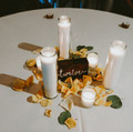 So, I have wine bottles and cork lights I was intending to use for centerpieces, but I decided to play around with some Dollar Tree candles and leftover greenery/petals from my other DIY’s and I think...
