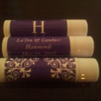 So one of my favors are done, lip balm with our monogram names and wedding date on them