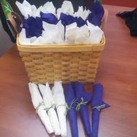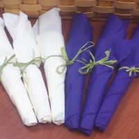 Favors done Utensils wrapped in napkins Bridemaid flowers