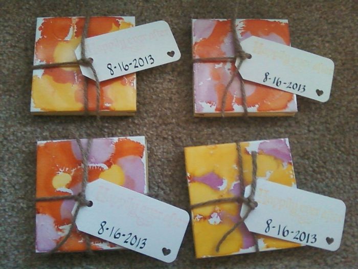 We're going to have a bamboo coaster, 1 oz jar of local (raw, organic, unfiltered) honey and two bags of organic tea, one chamomile and the other a mint blend. What are you going to use for favors? Show pics if you have them!
