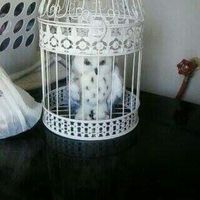 Our Hedwig arrived from Amazon today and my FMIL bought him a cage. We are doing an Owl Post Station for our card and gift table. I'm so excited about our little bird!