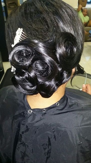 Trying to decide which style i like better from my hair trial. I'll be wearing a bird cage veil (see pic). Need some advice! Other pics will be comments