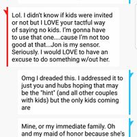 It happened. Right in the first set of RSVPs. Someone added their kid even though it was only addressed to her and her husband. I was sick to my stomach. I am incredibly nonconfrontational. But it...
