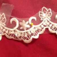 I started making my mantilla veil, guess who didn't bought enough lace? Yes me! I hate when my projects starts off like this. I will have to take off lunch tomorrow to drive all the way to Joann's for...