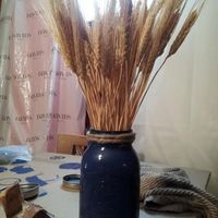 So I am working on centerpieces and I need some advice before I go shopping for more supplies. They both will have baby's breath added to them...I only had the wheat on hand at the moment. The small...