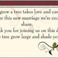 FH and I are giving live oak saplings for favors and I'd like to put a little card on them that says this: To grow a tree takes love and care, much like this new marriage we're excited to share. Thank...