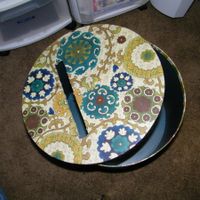I'm going to be adding grapes and my monogram to the box. The rosettes fabric is the same that I'm using for my dress and the rest of the design (grapes and ribbons) resembles our cake.