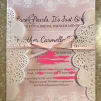 Check out the shower invitations my MOH designed, printed, and put together. My dress is lace, and our sorority (back in the day) jewel was a pearl. I love how they turned out, and feel super...