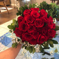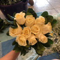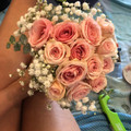 I made my bouquets today! I got 6 dozen white roses 2 dozen red roses 2 bunches of pink spray roses 4 bunches of babies breath (only used two) 6 bunches of eucalyptus 6 bunches of greenery (the darker...