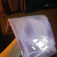 I can't quite capture it in this picture, but these two purples go really well together! I'm super excited! The light, sparkly purple is the fabric that will be used for the overlays on the guestbook,...