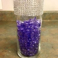 So, I want to do cylindrical vases with heart shaped jewel filler and silk daisies in them, with a rhinestone type ribbon around the mouth of the vase. Has anyone done anything like this before for a...