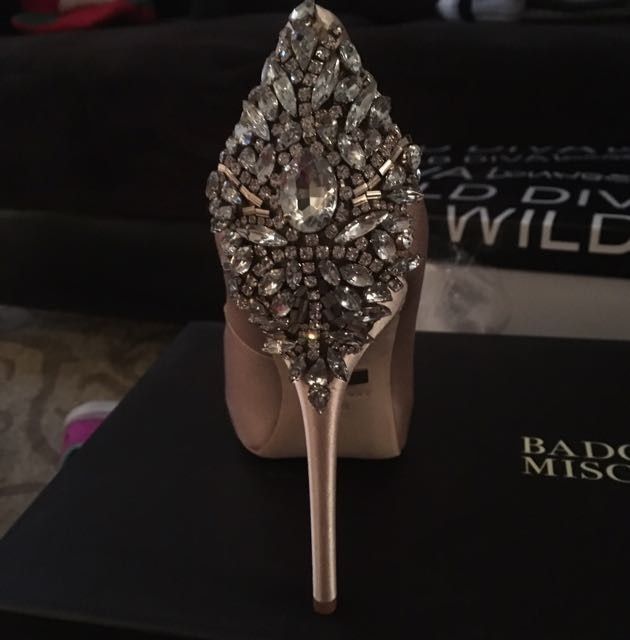My dress is ivory, so I wanted to wear bright color shoes like blue or orange, but I opted in the end to go with something that mirrored my personality and style. I couldn't chose so I bought these two pairs of shoes from Badgley Mischka, one in...