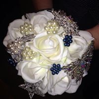 After taking some time off from wedding planning - I am back at it again. Did the mock ups for my MOH and BM Brooch Bouquets. They each have seven White Real Touch Roses from Hobby Lobby. Was going to...