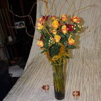 I went to the flower district with my aunt today (she is doing all my flowers). What do you think of our mock up? My linens are a chocolate brown satin, not ivory.