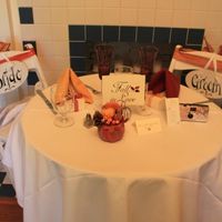 The first pictures is the size of our sweetheart table. The second pictures is what are table will look like. How are my fiance and I going to eat on this small table with letters and bouquet as our...