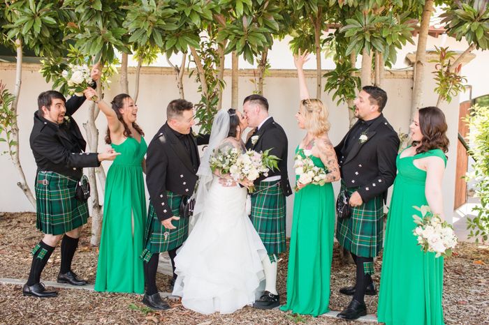 So... I'm doing a July wedding in my family's backyard, surrounded by cedar/pine/oak trees. Our colors are mostly green and white (i want it to look natural and earthy) with a splash of purple. What color dresses should i do for my bridesmaids???? I...