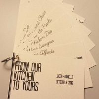 I was thinking something cute would be to print out different recipes like: * Recipe for Love * Couples Favorite Dinner * Couples Dinner for Date Night Just cutesy things. Any Ideas? Something kind of...