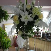 We met with our florist yesterday to see the first sample ......what do think, theses are for our tables the ones for the ceromony will be with the same flowers but no feathers and these he is just...