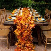 I'm looking for this leaf garland table runner thing has anyone seen one any were? Also do u think it would look good on the burlap table cloth?